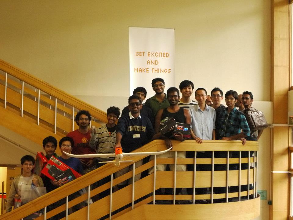 The winning team, Team Semantics 2, was a group of 2 students who built a UAV in 24 hours. They used the Justin.tv api, found that the screenshots API did not work, rejected a Flash-based approach and wrote a Selenium script to take screenshots of an open browser in their Linux computer. They then cropped the image programmatically. After which, they uploaded those screenshots via Dropbox to submit to face.com for face detection (this was after realizing that face.com needed a hosted image). Lastly, their plane crashed multiple times, after which they discovered they had accidentally reversed the polarity of their engine.