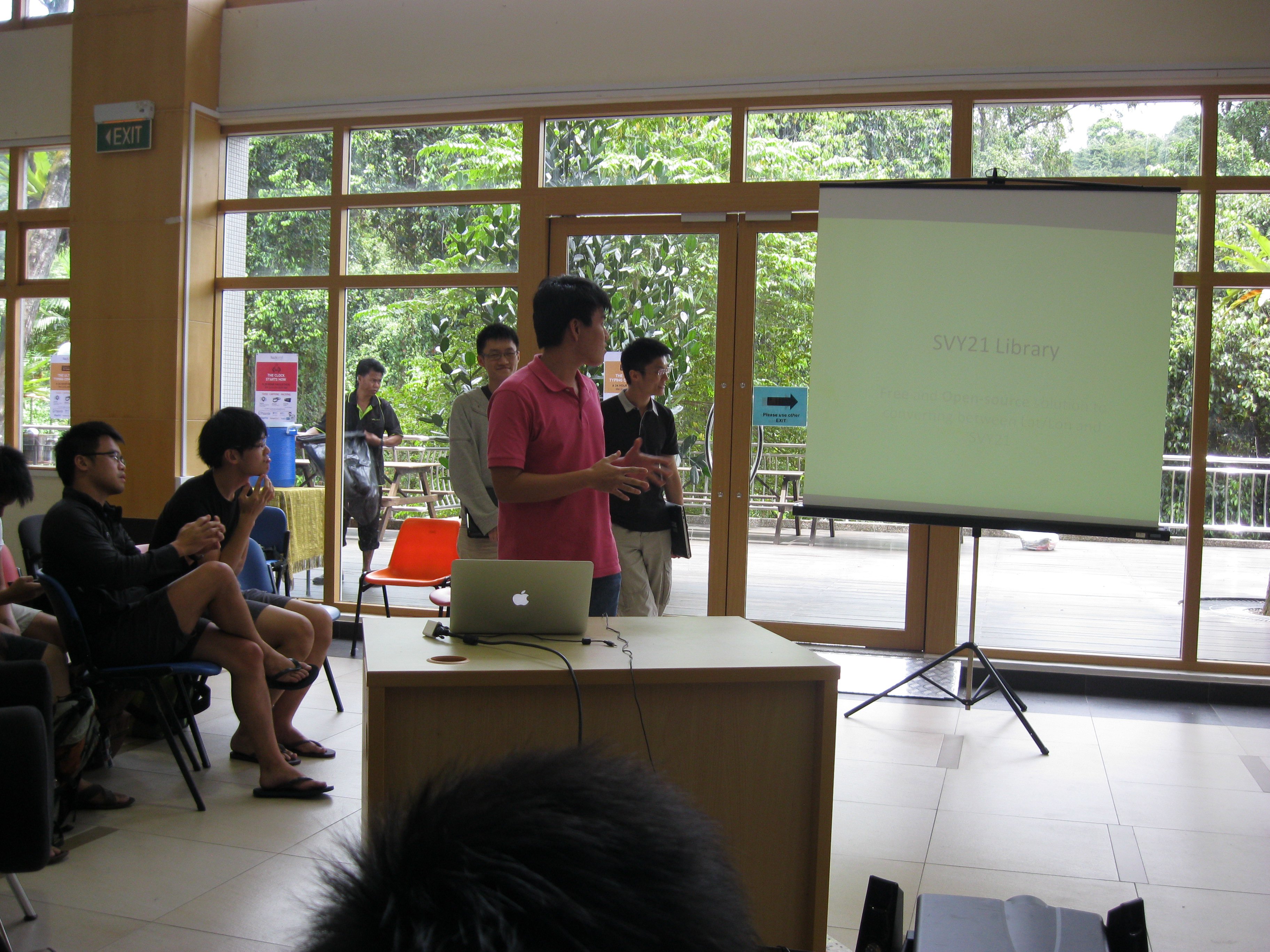 First prize was taken by Team SigLabs, who built an open source converter between Latitude/Longitude and SVY21 (https://github.com/cgcai/SVY21), a geodetic datum used here in Singapore. Their efforts earned each member an all-expense-paid trip to Silicon Valley (courtesy of Palantir Technologies), a new BlackBerry Z10, and a one year GitHub Small Account.